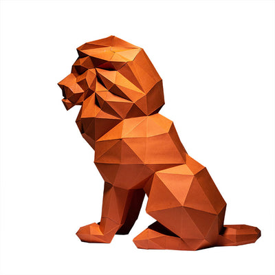 Symbols of strength and protection, sitting lions are often found at the entrances of municipal buildings and embassies. Display this 3D paper lion ornament at your doorway or in the foyer to keep a watchful eye. Able to sit on its own, this papercraft can be perched on a shelf, table or mantle, or floor.